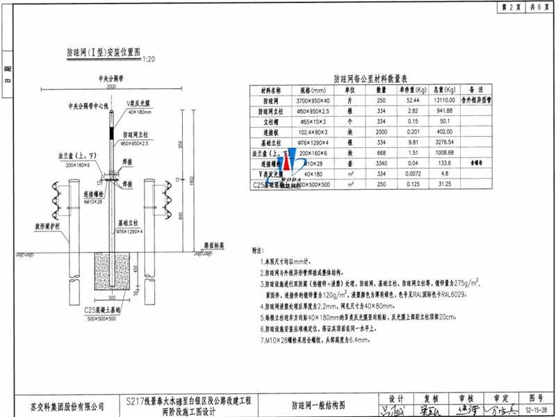 S217白銀區(qū)公路防眩網(wǎng)設(shè)計(jì)及施工圖紙