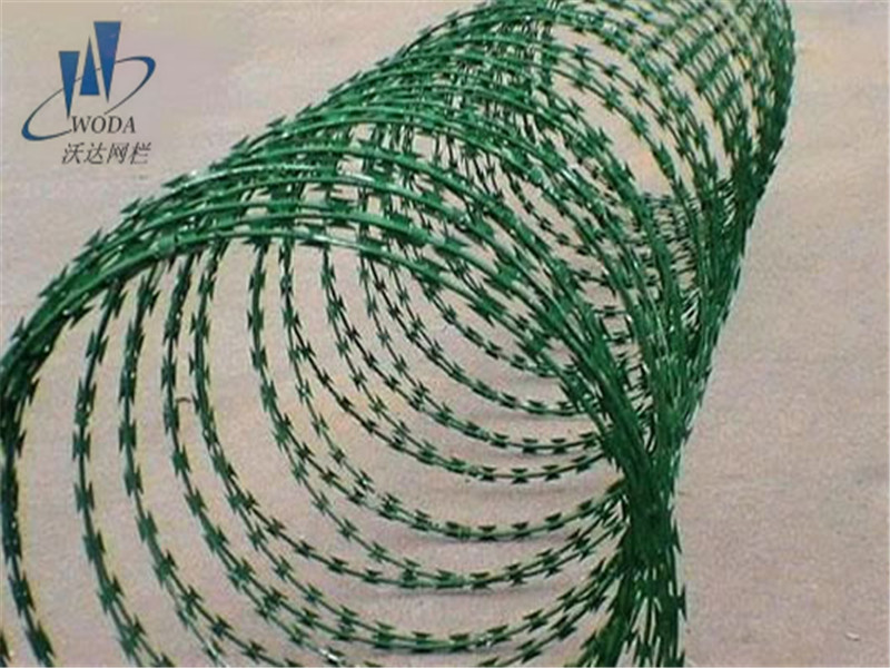 噴塑刀片刺網按照安裝方法不同可分為:(蛇腹式) 螺旋式噴塑刀片刺網,直線型噴塑刀片刺網,平板式噴塑刀片刺網,噴塑刀片刺繩焊接網等。