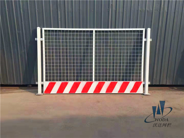 工地護欄常用顏色:黃黑相間、紅白相間,或定做,均為噴繪,以達到紅白相間的警示效果。網片網格為50*50mm,鋼絲直徑為3.0mm。