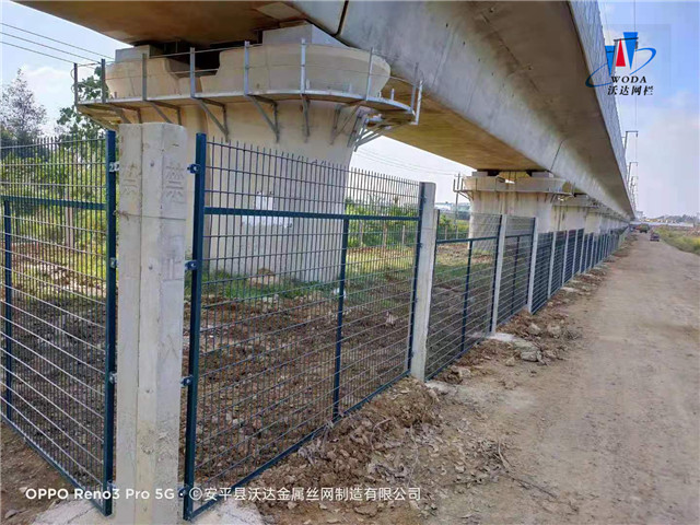 鐵路護欄網片強度高 整體穩定性好,經過鍍鋅、噴塑。具有良好的抗腐蝕和裝飾效果,鐵路護欄可選擇各種顏色,例如:白色、藍色、綠色等,整體效果美觀,立柱采用混凝土澆筑件,工程造價低,產品具有防腐、防老化、抗曬等特點。