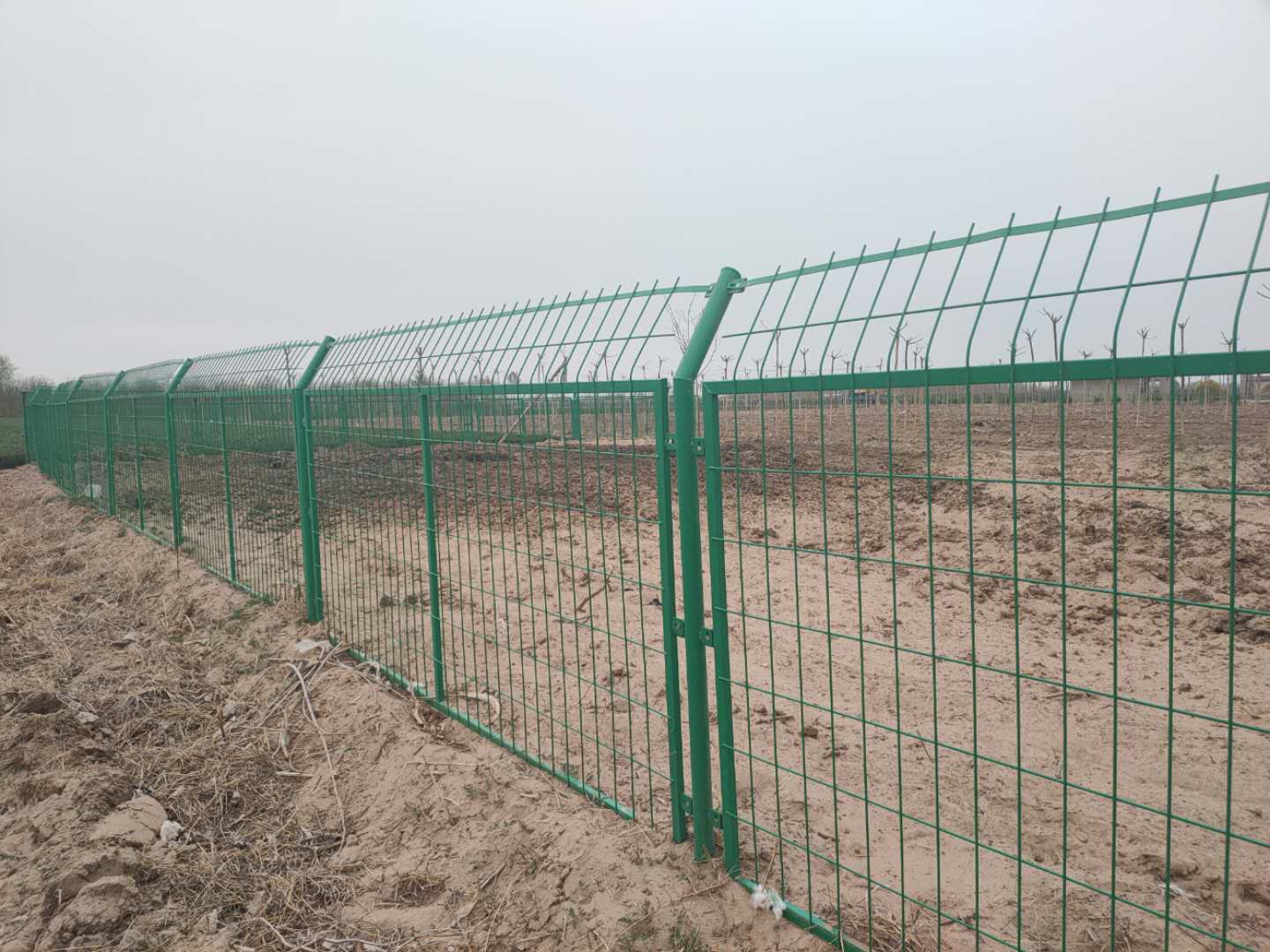 網片和刺絲在農區村鎮附近人在其周圍活動頻繁,網宜采用金屬網或鋼板網。因此種型式網對人沒有傷害。設計應采用下密(0~60cm高)10×15cm孔與上疏(60~120cm高)隔離網20×30cm孔,這樣可達到節約材料,節約造價的目的 。但由于鋼板網的造價較金屬網造價高一些,而且美觀性也稍差,并且對復雜地形的適應性比較弱,目前國內建設的高速路上已很少采用。